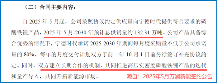 2025年5月,公司与宁德时代签署了供货协议,约定2025年5月至2030年向其累计供应磷酸铁锂产品约132.31万吨,按照当前市场价格估算,这笔订单总金额已超720亿元。