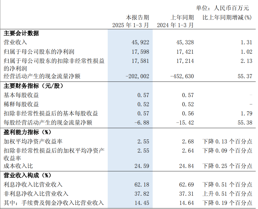 2024年,该行本外币贷款总额达5.39万亿元,较上年增长7.45%,全年信贷净增量超3700亿元,创历史新高。2025年一季度贷款余额进一步增至5.58万亿元,净增量达到近年单季峰值。